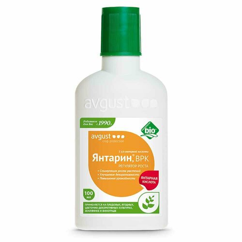 Удобрение avgust Стимулятор роста и развития для растений, природный регулятор роста AVGUST, Янтарин, 100 мл, 0.1 л, 118 г, 1 уп.