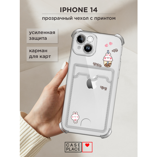 Чехол на Apple iPhone 14 (Айфон 14) с картой и принтом Bunny bubble tea