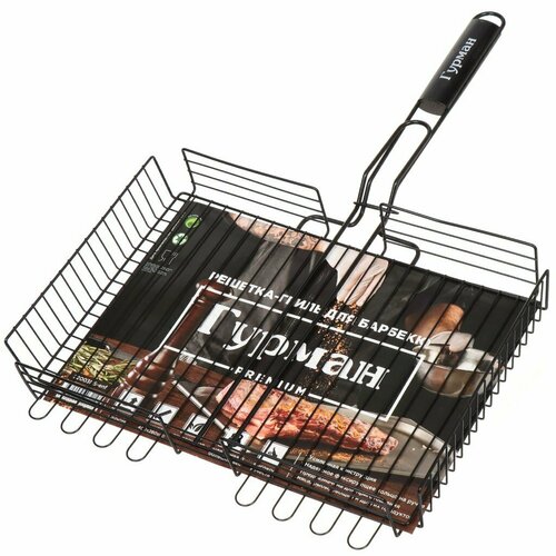 Решетка барбекю 550х370х270 мм, Гурман, рукоятка дерево, плоская, CB1213