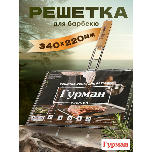 Решетка барбекю 340х220х30 мм, Гурман, рукоятка из дерева, плоская
