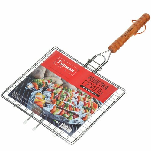 Решетка барбекю 550х320х200 мм, Гурман, нержавеющая сталь, рукоятка из дерева, плоская, съемная ручка, хром