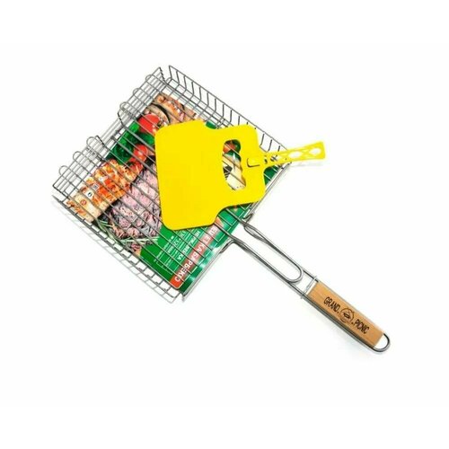 металлРешетка для гриля Grand Picnic из нержавеющей стали - это профессиональный инструмент для тех, кто любит готовить на гриле. Она имеет зажим и регулировку высоты захвата, что позволяет настроить ее под любой размер блюда. Изготовлена из высококачественной стали AISI 304, которая обеспечивает долговечность и устойчивость к коррозии. Рабочая поверхность 390 х 350 мм, высота бортов 70 мм и диаметр прута решетки 3 мм гарантируют равномерное распределение тепла и равномерную прожарку продуктов. Благодаря материалу рукоятки из дерева, вы можете легко держать решетку в руках и не бояться ожогов. В комплект входит веер, который поможет вам разжечь угли и ускорить процесс приготовления. Grand Picnic - это бренд, который зарекомендовал себя как надежный и качественный производитель аксессуаров для гриля. Приобретая решетку для гриля от Grand Picnic, вы получаете не только качественный инструмент, но и уверенность в его надежности и долговечности.