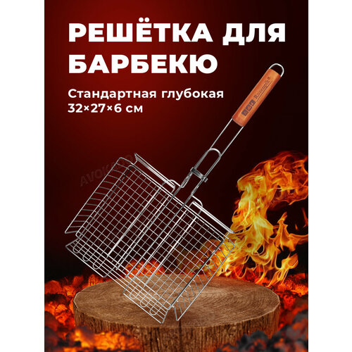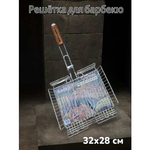 Цены на Решетка для гриля и барбекю стальная большая на пикник на мангал 42 х 32 х 6 см с деревянной ручкой решётка для мангала в г. Пермь