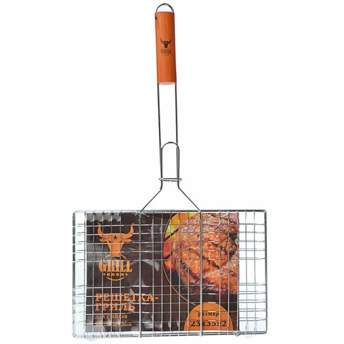 GRILLBOOM Решетка-гриль хром, 21х25х2см, эконом. Хромированная решетка для гриля на мангал предназначена для запекания мяса или рыбы. Изготовлена из жаропрочного материала, не деформируется от воздействия высоких температур. Ручка с деревянной рукояткой, которая позволяет защитить руки от ожогов и обеспечивает удобный хват при переворачивания продуктов. Чтобы купить решетку для гриля, добавьте ее в корзину.
