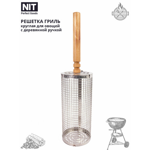 Решетка гриль круглая барбекю с деревянной ручкой NIT Perfect Goods, 20 см