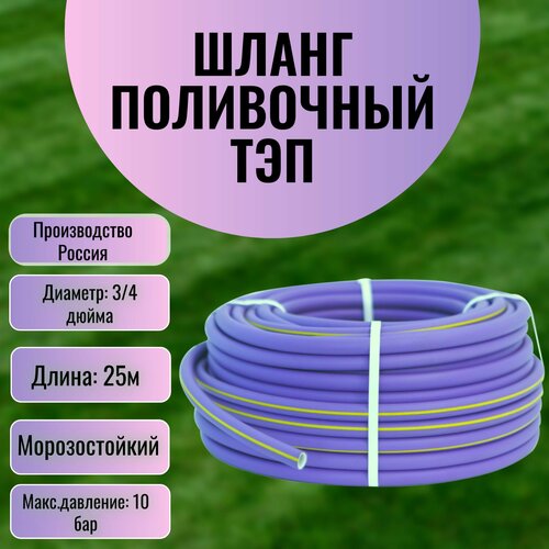 Шланг поливочный 3/4" 25м, резиновый ТЭП, морозостойкий, армированный, трёхслойный