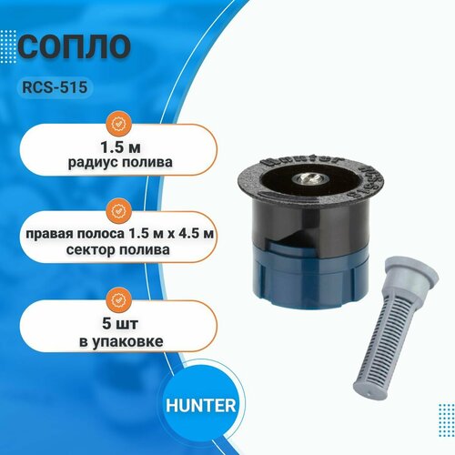 Сопло полосовое правый угол RCS 515 (5 шт), форсунка веерная для спринклера (дождевателя), автополив (орошение) сада и газона, радиус полива 1.5х4.5 м, HUNTER