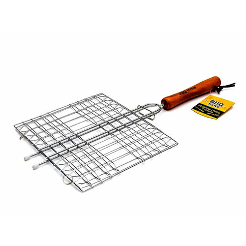 Решетка-гриль BBQ Time, глубокая, деревянная ручка, 28 x 22 см
