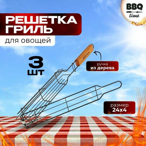 Решетка-гриль BBQ Time, глубокая, деревянная ручка, 45 x 25 см