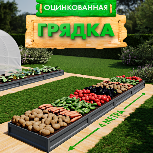 Грядки для огорода оцинкованные 4м, "оплод" графит, 4х0,8х0,2