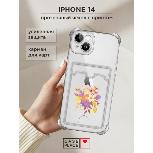 Чехол на Apple iPhone 14 (Айфон 14) с картой и принтом Цветы полевые