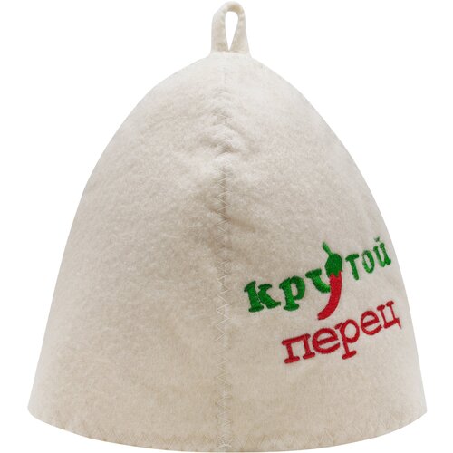 Шапка для бани и сауны, белая, из войлока с вышивкой "Крутой перец"