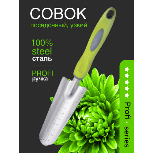 Совок садовый металлический посадочный узкий нержавеющая сталь с пластиковой ручкой `OLOV Профи`