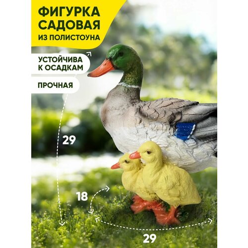 Фигурка садовая "Уточка с утятами" из полистоуна, для сада и дачи