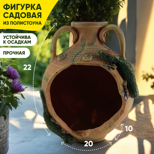 Садовая фигурка для дачи, сада и огорода на газон 'Амфора с ящерицами кашпо 22x20x10 см'.