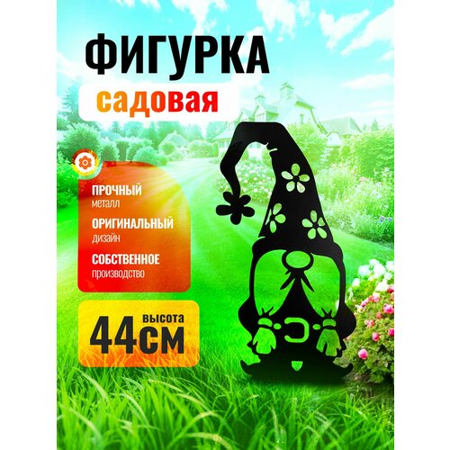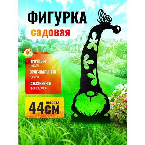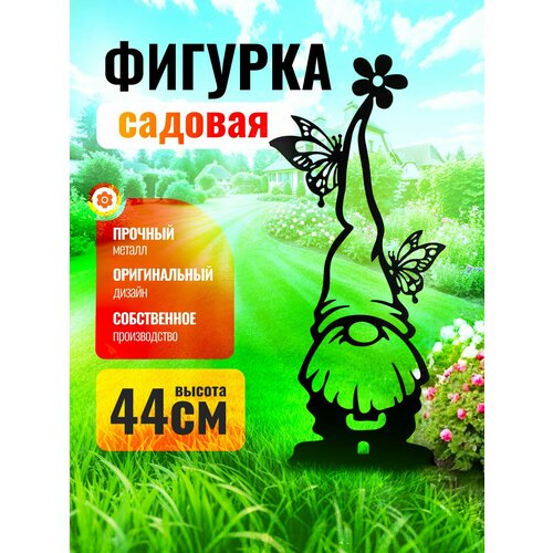Садовая фигурка Гном 1 , декоративная , металлическая для сада и огорода.