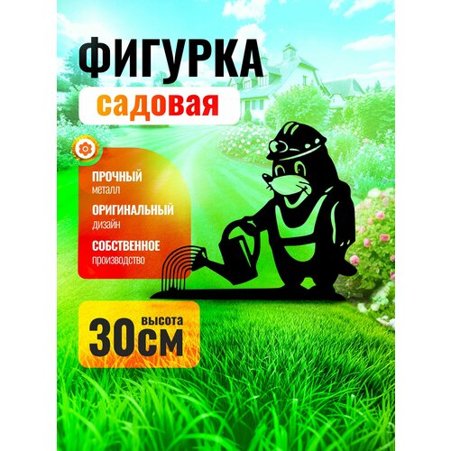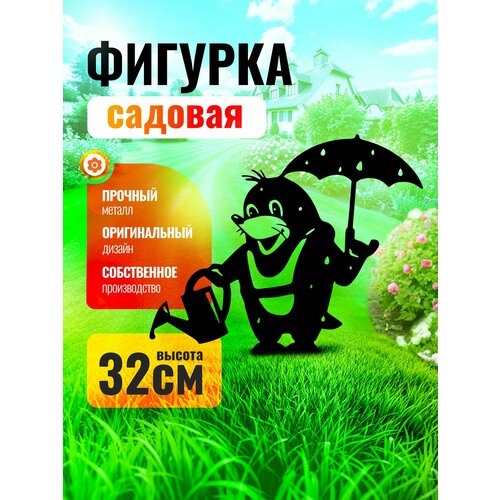Садовая фигурка Крот с зонтиком , декоративная , металлическая для сада и огорода.
