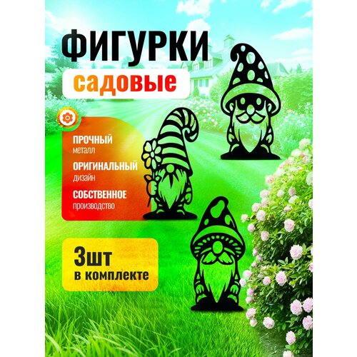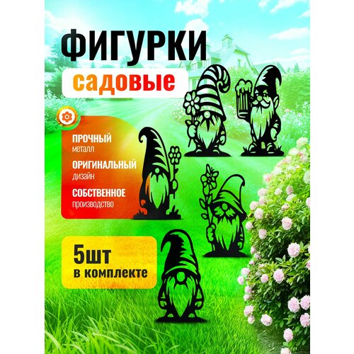 Садовые фигурки декоративные для сада и огорода Гномики 5 шт , металлические