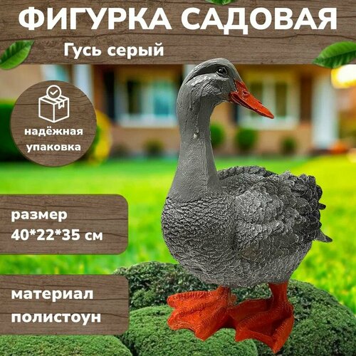 Садовая фигура "Гусь серый" декор для дачи, сада и огорода