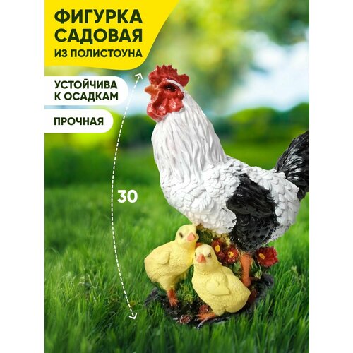 Фигурка садовая "Курица с цыплятами" из полистоуна, для сада и дачи