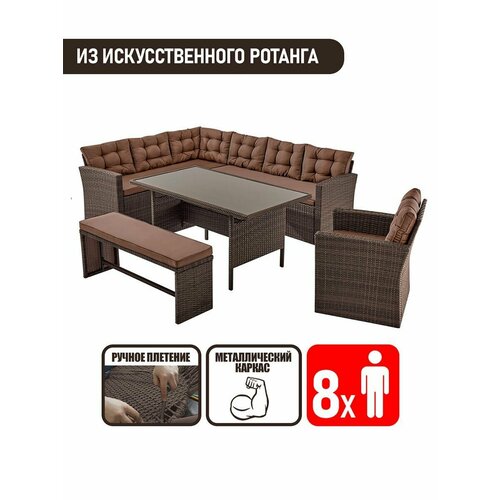 Комплект садовой мебели Палермо Корнер-8 из искусственного ротанга шоколад