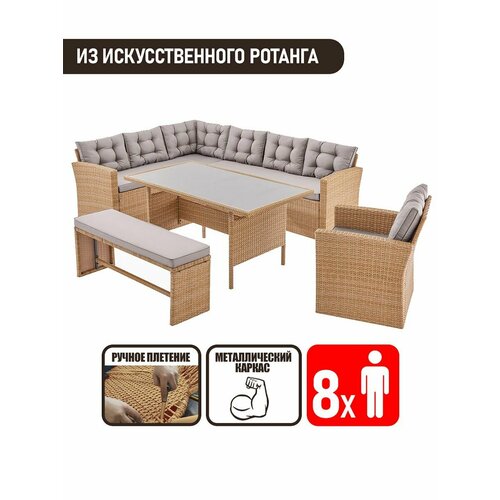 Комплект садовой мебели из искусственного ротанга Палермо Корнер-8 пшеничный
