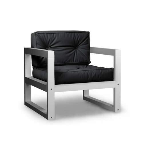Садовое кресло астер-с, черная-белая эмаль, кожзам, деревянное, мягкое, для дачи, для кафе и бара, на веранду, в террасу, для бани