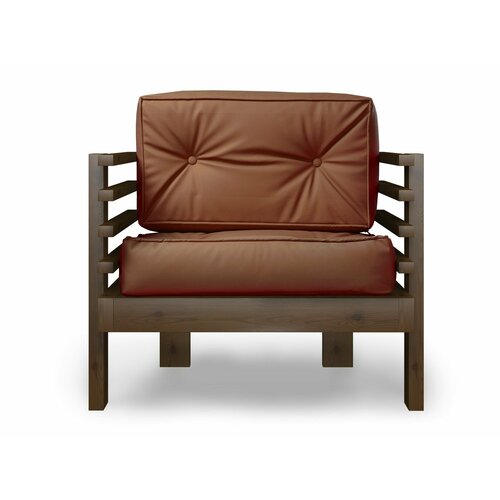 Кресло стоун-с, коричневая-орех, кожаное, деревянное, мягкое, для дачи, для кафе и бара, на веранду, в террасу, для бани