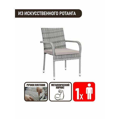 Кресло садовое KONWAY "Адриа", с подушкой и каркасом из ротанга, черное, 58x63x88 см
