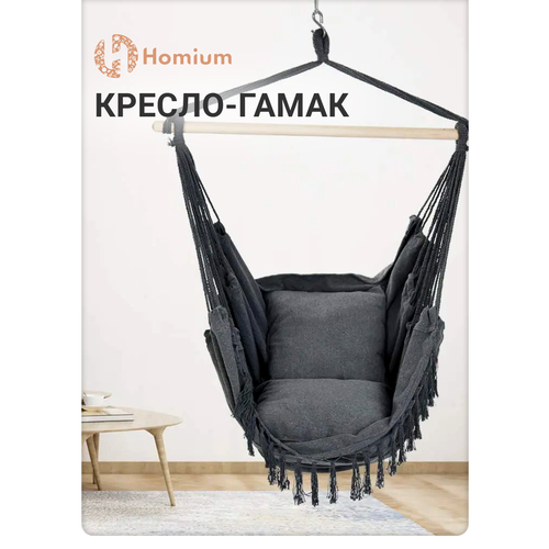 Кресло-гамак ZDK Homium, подвесные качели, черный, с кисточками