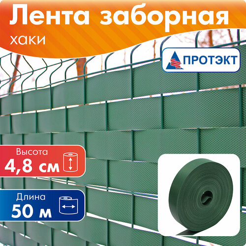 Лента для забора "Протэкт", 2D/3D/рабица, 4,8х50м, цвет хаки