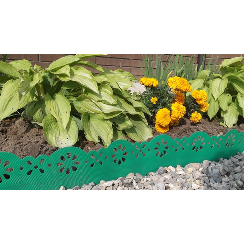 Пластиковый бордюр идеально подходит для создания аккуратных границ между растениями и газоном. Он также может использоваться для оформления приствольных кругов и создания красивых композиций на клумбах и в цветниках.