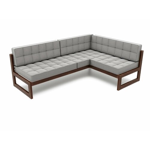 Угловой садовый диван СЕГА-У-С правый, серый-орех, велюр, массив дерева, в офис, в салон красоты, скандинавский лофт