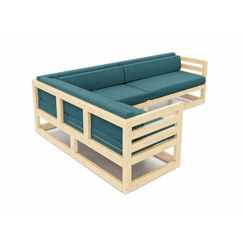Угловой садовый диван СЕГА-У-С правый, бирюзовый-сосна, массив дерева, офисный, садовый, для кафе и бара, скандинавский лофт