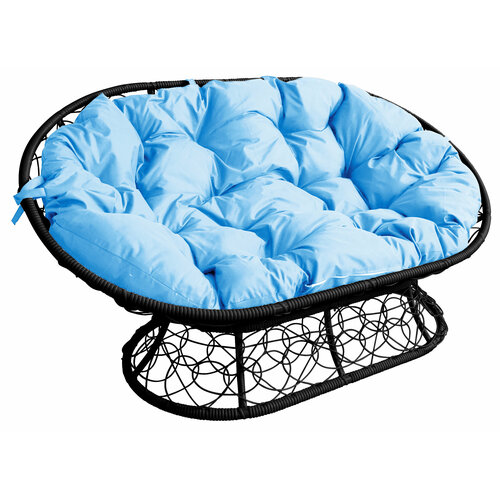 Диван "Мамасан" с ротангом чёрное / голубая подушка M-Group