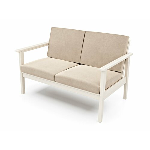Садовый диван кушетка ДОМИНО-М-С, бежевый-коричневый-беленый дуб, велюр, двухместный, массив дерева, на кухню, в салон красоты, офисный, скандинавский лофт