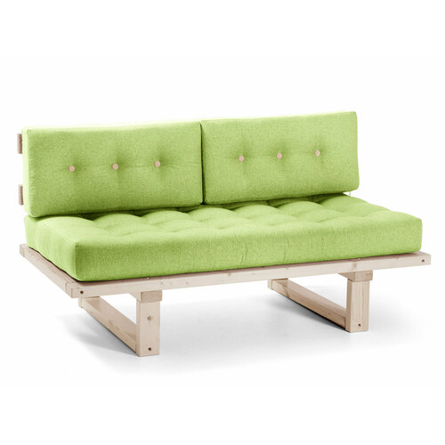 Диван изготовлен из массива сосны, который не боится влаги и устойчив к перепадам температур. Это гарантирует долгий срок службы и сохранение первоначального вида изделия.