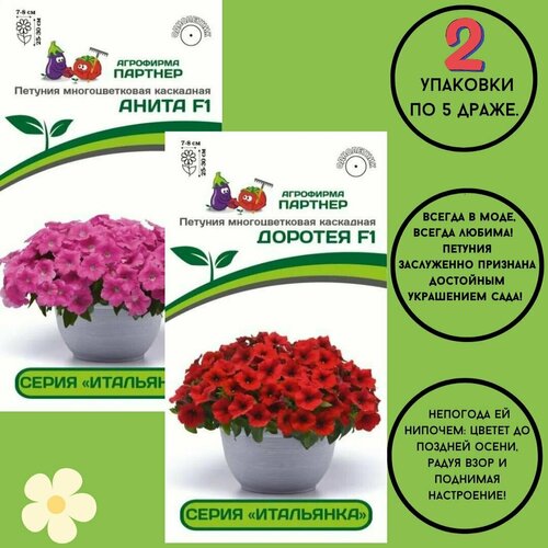 Петуния семена многоцветковая каскадная серия "итальянка" : виолетта F1+розабелла F1 ,2 упаковки по 5 драже.