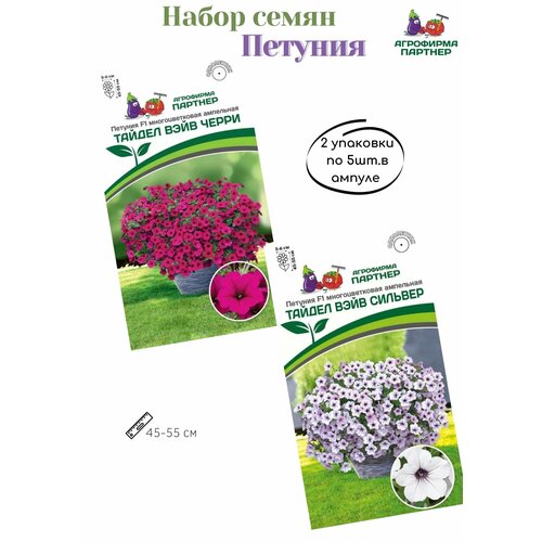 Петуния семена многоцветковая ампельная: тайдел вэйв сильвер+тайдел вэйв черри.2 упаковки по 5штук.