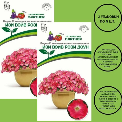 Петуния семена многоцветковая каскадно-ампельная ИЗИ вэйв рози доун,2 упаковки по 5 штук.