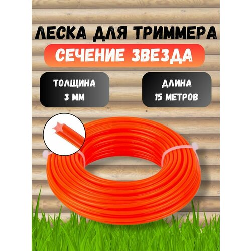Леска триммерная Звезда, сечение звезда, диаметр 3 мм, длина 15 м, красная