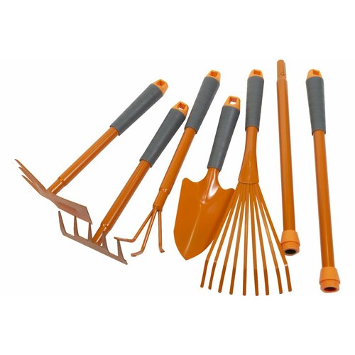 Набор POLYAGRO совок, грабли 5-зубые, веерные, мотыжка комбинированная, рыхлитель, 2 удлиненные рукоятки 7661705