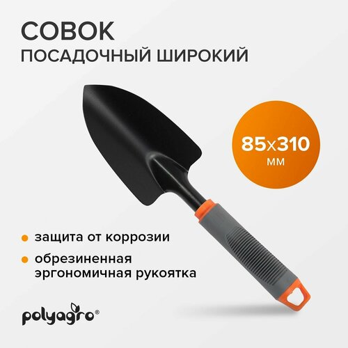 Совок садовый, посадочный, широкий, с обрезиненной рукояткой, Polyagro