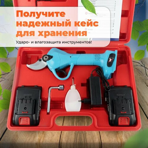 Секатор аккумуляторный садовый 2АКБ, электросекатор сучкорез ручной для сада, кейс для хранения