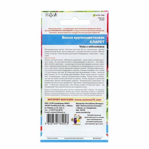 Семена Цветов Виола крупноцветковая "Кларет", 0, 05 г