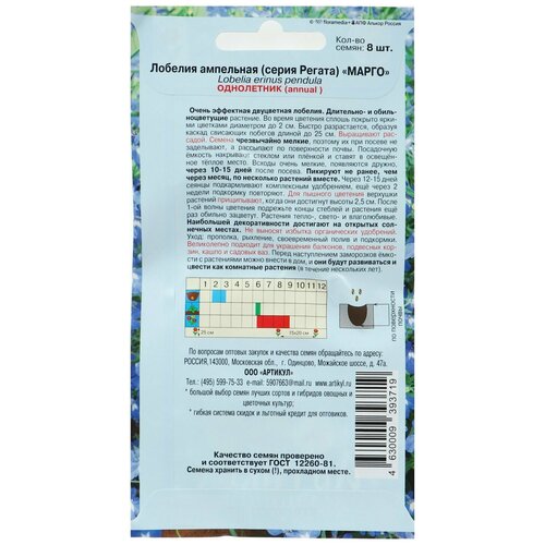 Семена цветов Лобелия ампельная «Марго», О, 8 шт.