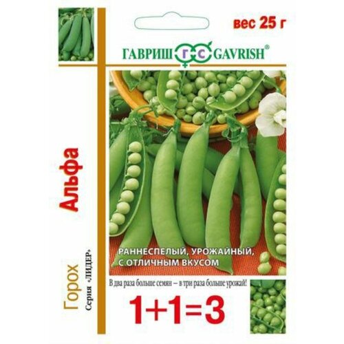 Семена Горох Альфа лущильный 25г Ранние (Гавриш) 1+1