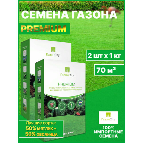 2шт: Семена газона PREMIUM 50% мятлика + 50% овсянница, 1 кг