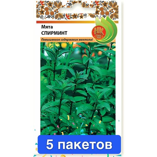 Семена зелени и пряностей Русский Огород "Мята Спирминт", 0,05 гр, 5 пакетов