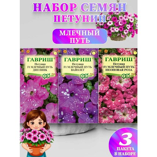 Набор семян цветов "Петунии"серия Млечный путь, однолетние, 3 упаковок.